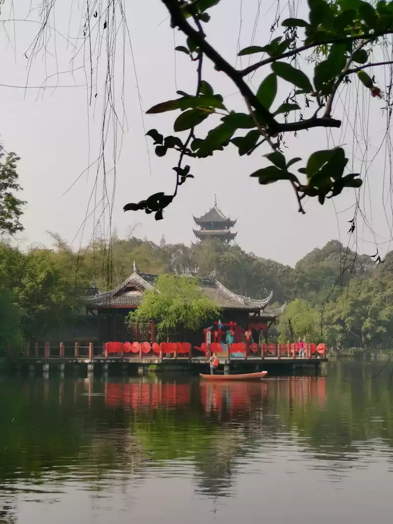 Overlooking the lake, there is a 7-storey Xunfeng Tower in the distance, which was one of the eight scenic spots of Shuangliu in ancient times, and was rebuilt in 87 years.