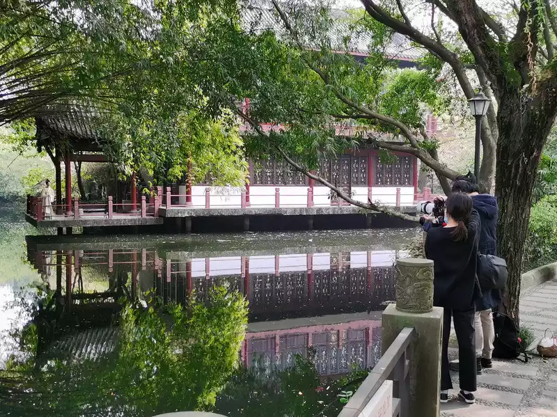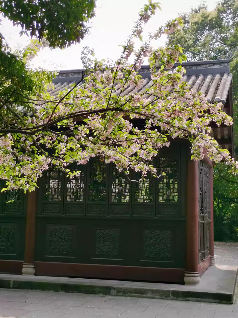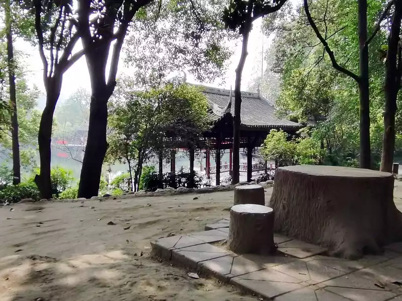 There is a small pavilion on the hillside in the northwest corner, called Zhuangfei Pavilion.