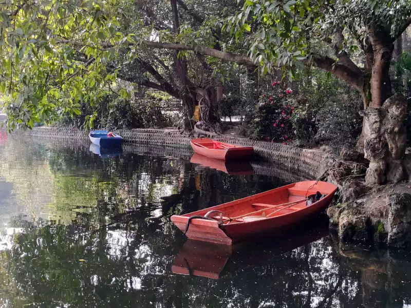 The southeast corner of the lake is dominated by the Begonia Pavilion, which is the place with the most buildings in the park.