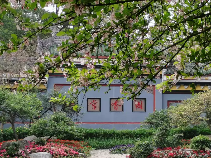 The wall of the courtyard has the four big characters "Begonia Fragrance Garden" written on it