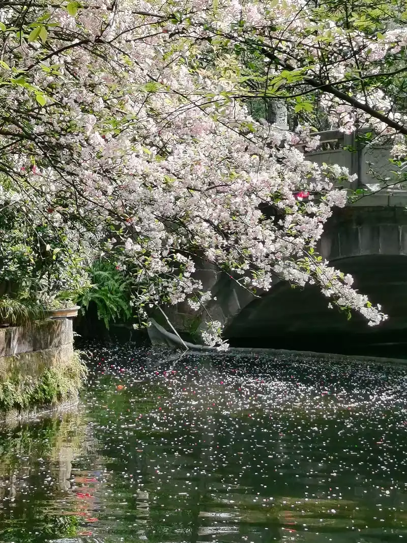 There were also two roads down from the Jiang Wan Ancestral Hall just now, we walked through the Tower Bridge, and now it is the Xirang Bridge closer to the lake.