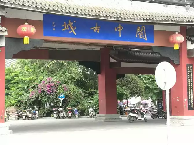 is a tree workshop next to the road in front of the mountain gate, titled "The First Famous Mountain in Western Shu",