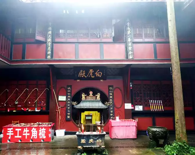 White Tiger Hall, dedicated to the White Tiger Protector God, the twenty-eight constellations in the middle and west of the seven constellations form a tiger shape, the direction belongs to gold, its color is white, Therefore, it is called the White Tiger, which is the protector of the Western Dharma.