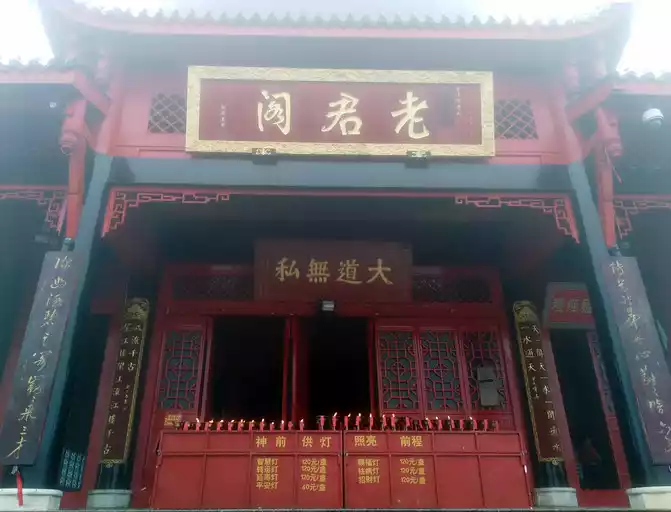 The base of the pavilion is 400 square meters wide and has a total of six floors. The bottom is rounded. It means that the sky is round and the place is round; The layer has octagonal to show the gossip; The appearance is in the shape of a tower, and the top is connected to the three round treasures to show the meaning of the three talents of heaven, earth and man. The three-story covered pavilion enshrines a huge bronze statue of Taoist leader Li Laojun riding a green ox.