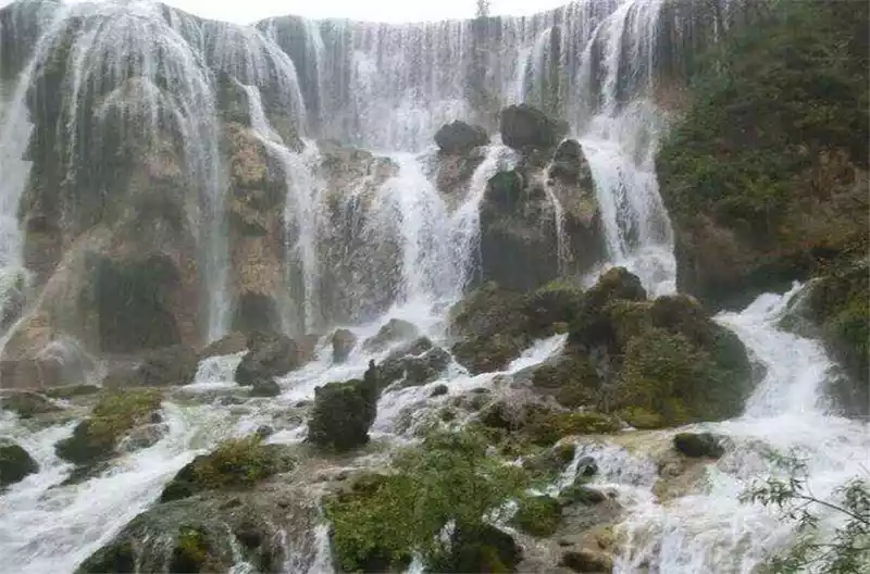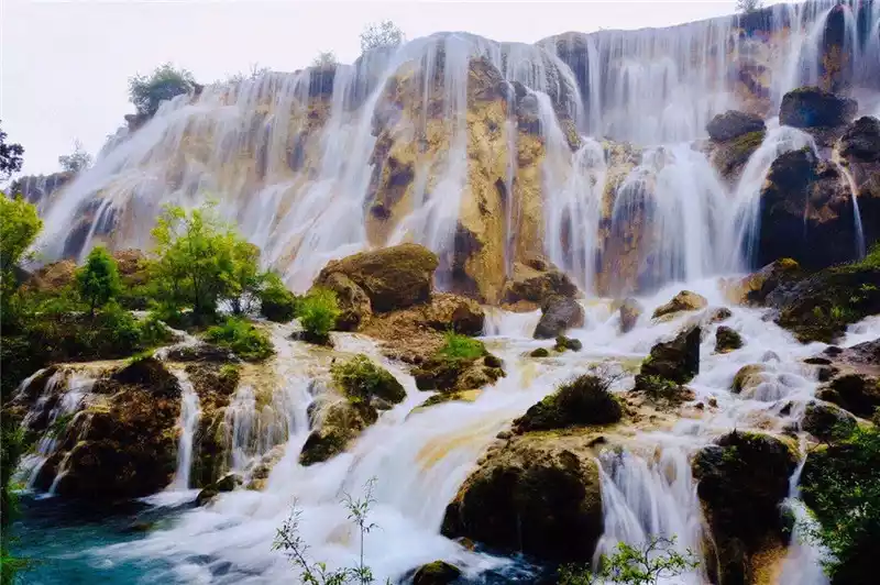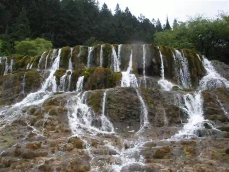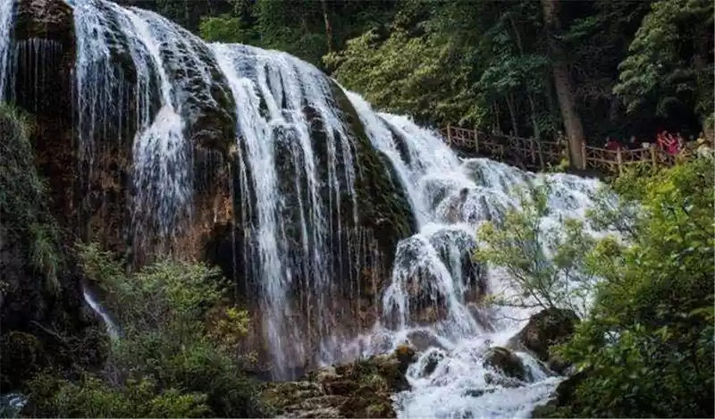 Take a car out of the Five Flowers Sea to Pearl Beach, and the water droplets jumping on the shallows are like pearls in the sun. Going down the plank road, Pearl Beach Waterfall is like Wang Xifeng's appearance in the Red Mansion. From the initial glimpse of the corner to the final view, "What a pearl screen" is Mr. Ye Shengtao's lament about Huangguoshu Waterfall, and I think it is appropriate to put it here.