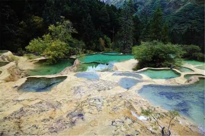 Our tour order is in order: Colorful Pond---- Huanglong Ancient Temple--- Zhengyan Pond----- Jinsha Paving----- Bonsai Pond------ Waterfall Liuhui------ Welcome Pond. With the magician of the sun, the water of Huanglong is of different shades and colors, especially the colorful pool known as the "Yaochi of the world", the pool water is like a piece of green jade plate, which is not inferior to the water of Jiuzhai, and the calcification zone of Huanglong extends from the top of the mountain to the foot of the mountain, with different shapes and characteristics, although its waterfall is not as spectacular as Jiuzhai, but reflects the accumulation of travertine, and also has a unique charm, we stayed for 4 and a half hours, and we still felt that time was in a hurry. After going down the mountain, the master has been waiting for us in the parking lot, we are also tired, we fell asleep in the car unknowingly, and it was about half past four in the afternoon when we arrived at Jiuzhaigou , and the master sent us to the hotel we booked online, telling us to have a good rest to meet tomorrow's challenge.
