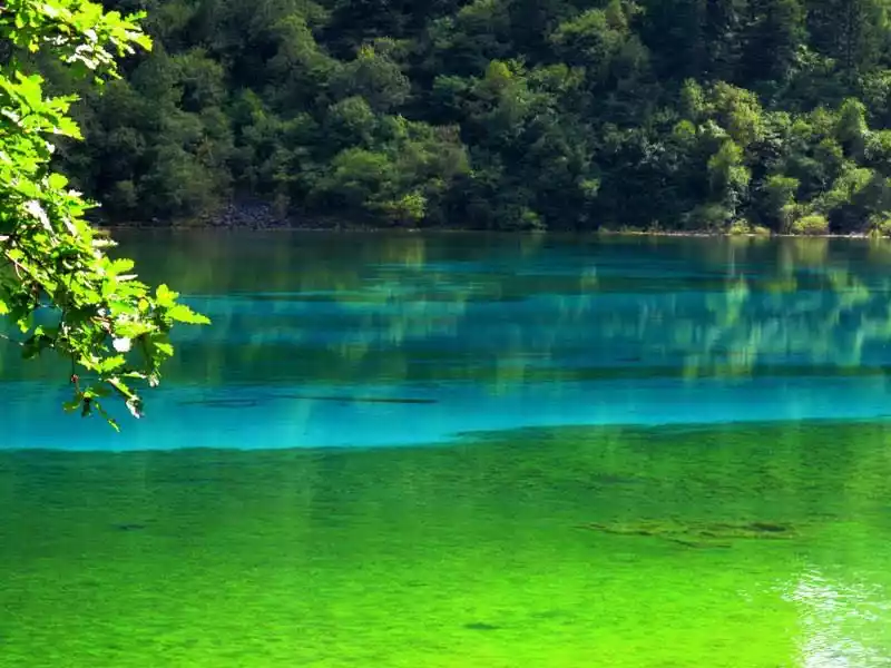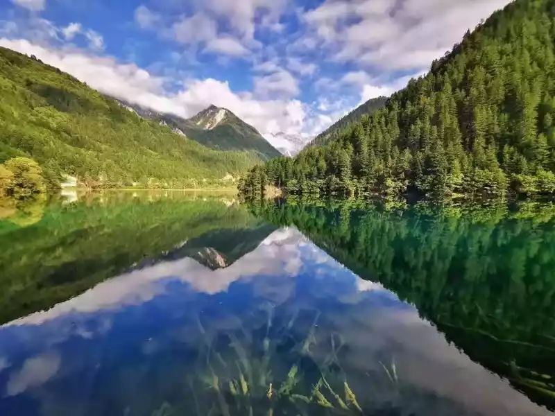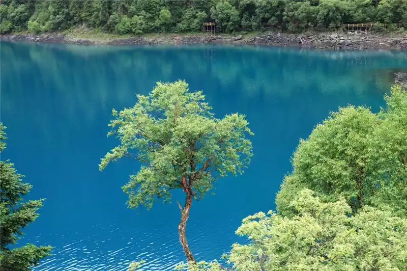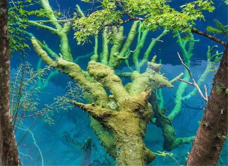 The water of Jiuzhai is the proudest masterpiece of Jiuzhai, as the saying goes, "Jiuzhai does not look at the water when he returns". The water in Jiuzhai is like a quiet girl, without a trace of waves, like a mirror that replicates the blue sky and white clouds and the scenery on both sides of the strait. Some are like lively teenagers, jumping up and down between the high and low terrain, splashing water Jiuzhaigou There are three ditches, distributed in a Y-shape, the left side of the fork is Zecha Wagou, the right side is Rize Ditch, which is also a scenic spot, and the bottom is Shuzhenggou. We took the regular route, taking a car from the Wuhuahai at the top of Rize Gully and heading down. The tour guide on the car will introduce each Haizi that passes by one one by one, and I didn't hear the exclamation mentioned in many travelogues in the car, I don't know if everyone is too reserved or a little disappointed like me.