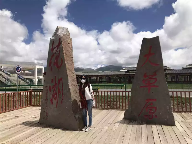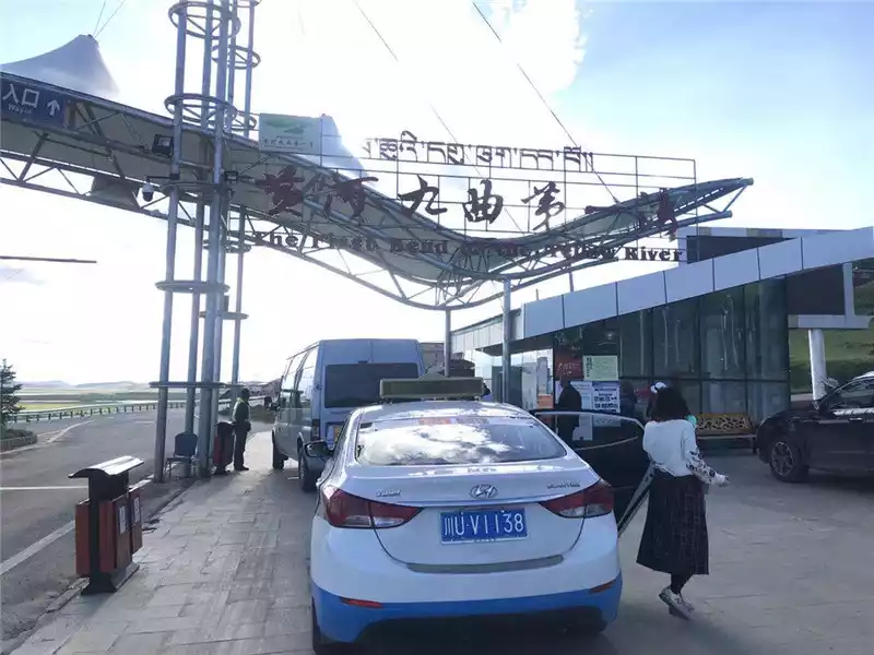 After passing through the county seat of Ruoerge , almost one o'clock in the afternoon, the car came to Huahu, and the conductor wrapped a big padded jacket to sell tickets, tickets were 58 yuan, and electric cars were 20 yuan. Looking at our shivering appearance, the Tibetan handsome guy at the attraction deliberately joked that it was so warm today, which was really funny.
