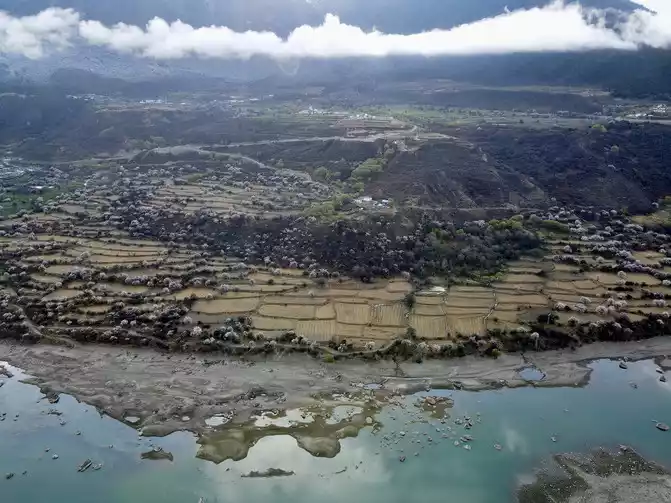 The second highlight is the Nyingchi Peach Blossom Line, Bomi, Suosong and Gala Village for three days and three places, and you can see enough peach blossoms at one time. The Peach Blossom Valley in Suosong Village is the most beautiful, with the beautiful scenery of the Kennyang River in the Grand Canyon of the Brahmaputra River, we are on the beach of the river valley, and half of it is desert, generally the effect of the river, the peach blossoms in the mountains, the flowing river, and the snow-capped mountains in the distance, pushing the whole trip to a climax. On the morning I left Suosong Village, I really didn't want to leave, I didn't want to leave.