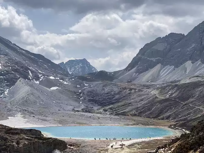 The first highlight is a one-day trip to Aden, the weather is clear, and the mood is also good. Arriving at the Luorong Cattle Farm, taking panoramic views with your mobile phone, feeling the feeling of being surrounded by three sacred mountains is very good, the golden fields, rivers and swamps under the mountains cover the scrolls, Aden lives up to its name. Xian Nai Ri, Xia Nuo Dorji, Yang Mai Yong, I remember you, and I will think about the warm and happy feeling of being surrounded by you under your feet in my future confused and impetuous days. Hiking all the way to the milk sea, it was hard, because there was a certain expectation, so I didn't feel so hypoxic heartbeat, but the wind was very strong, and I stayed in the milk sea for nearly 30 minutes, which made my brain hurt.