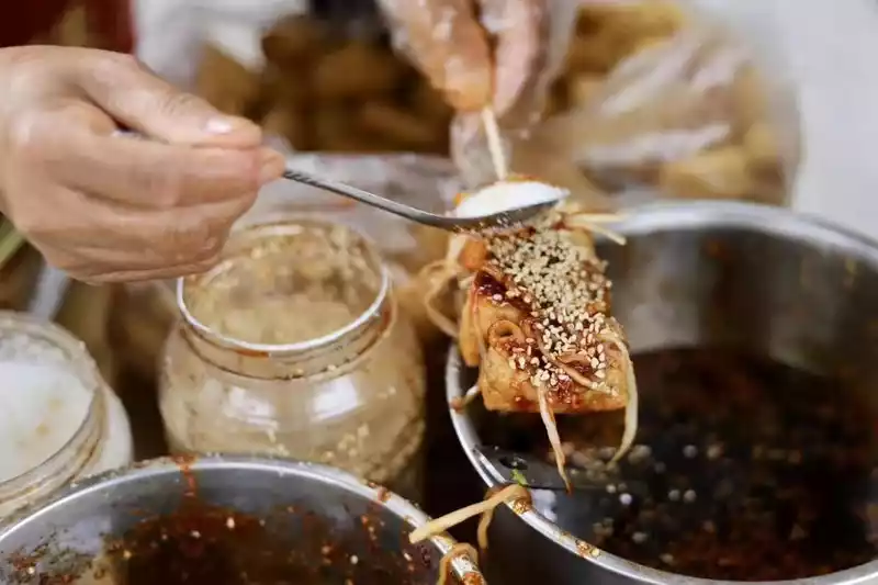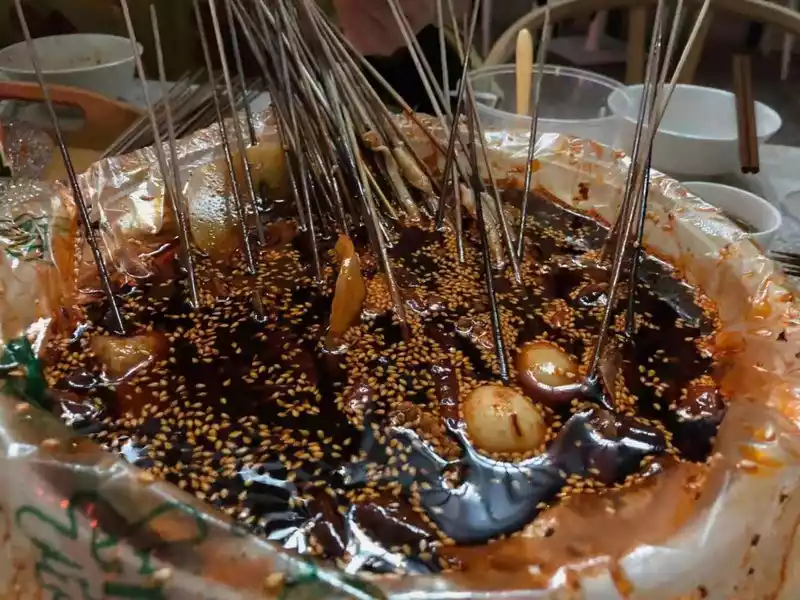 There are too many snacks in Leshan to count, barbecue, beef, sweet duck, card cakes, tofu brain, fried skewers, bowl chicken, egg baked cake, grilled fish fillets, beef noodles and so on. The train was speeding by, and all these delicacies were like a movie in my mind, whetting my appetite.