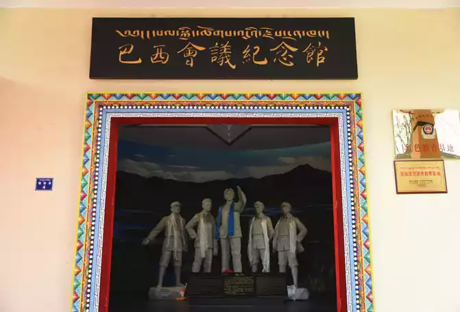 We continued to follow the red marks of our ancestors, did not forget our original intentions, and went on another journey, and arrived at the site of the Brazil Conference, formerly known as Banyou Monastery, located in the southeastern border of Aba Prefecture and Gansu Province, in Baxi Township, Ruoerge County (before 1956, Songpan County), near the edge of the grassland, it is a semi-agricultural and semi-pastoral Tibetan settlement, 32 kilometers east of Ruoerge County. The wall of the Daxiong Treasure Hall is 27.70 meters wide and 33.7 meters deep, and the apse is 14.50 meters wide and 6.22 meters deep, and the entire plane is "convex" in shape. The hall wall is built and rammed with loess slabs, the bottom is wide and narrow, the wall foundation is 1.40 meters thick, and the balance is 8.92 meters. In addition to the Brazilian Conference site, the Brazilian Conference Memorial Hall was also established next to it.