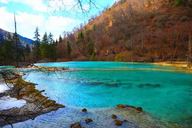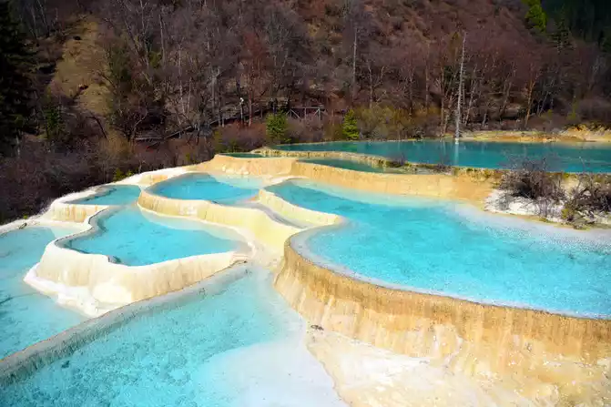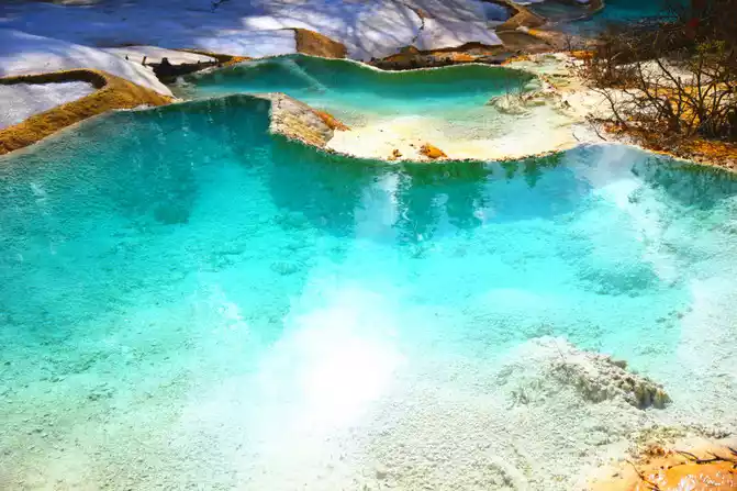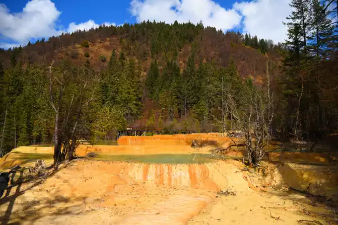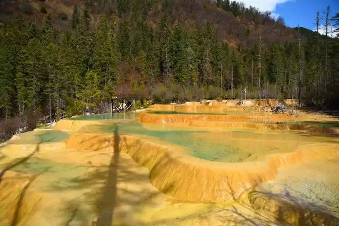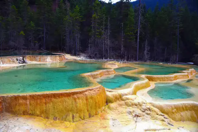 "Nenen Sangcuo", also known as the Immortal Pool, means the place where fairies bathe. A real Nen Sangcuo (fairy pool), which not only has the magic of the yellow dragon, but also the magnificence of Jiuzhaigou. It really achieves both Jiuzhaigou and Huanglong landscapes. The typical surface karst landform here, the hillsides are wrapped in yellow and milky white calcareous, forming 2,600 pools and mountain lakes of different sizes and bright water, which is what we call "Haizi" and "calcified terrace". The calcification rate here is very fast, which is the world's fastest calcification deposition rate in modern times.