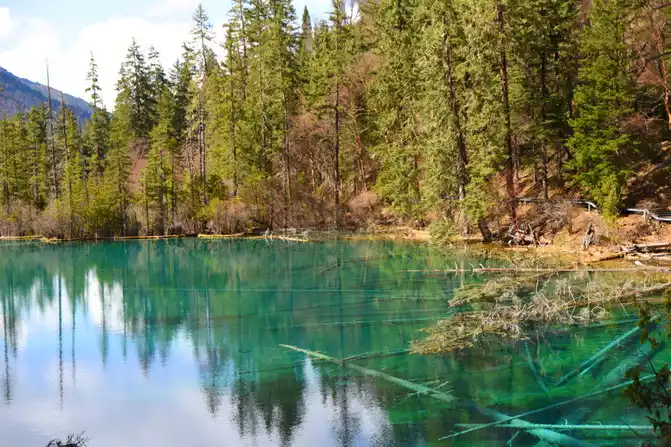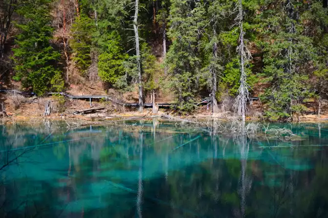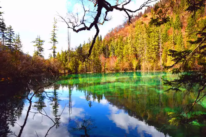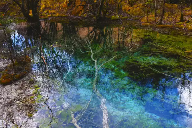 The entire scenic spot of Nenen Sangcuo (Fairy Pool) is surrounded by vast forests and seas, and the scenic spot is divided into three scenic spots from bottom to top by tall trees and dense arrow bamboo, the lower section is called "Jinliu Panbo", the middle section is called "Fairy Pool", and the upper part is called "Lotus Terrace Reflection". The core attractions of Nenen Sangcuo (Fairy Pool) mainly include Water Curtain Cave, Jinyin Beach, Shenquan, Yaochi, Qinglong Sea, Lotus Terrace Colorful Pond, Fairy Pool, Divine Frog Sea, Mofu Cave, Fairy Ping, Wanduan Beach, Yonglian Spring, Lotus Terrace, Tibetan Village and Tibetan Folklore. Its main attractions are located in an alpine gorge 3,000 meters long and about 300 meters wide. The altitude of Nenen Sangcuo (Fairy Pool) is only more than 2,200 meters, and the relative height of each attraction is only more than 300 meters.