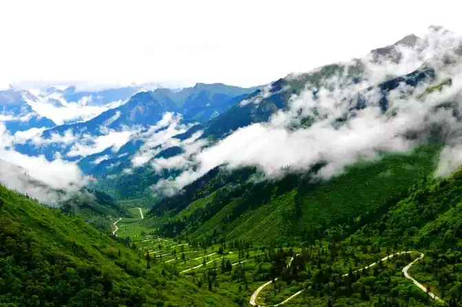 After visiting the Nensancuo (Fairy Pool) scenic spot, you can also stop by to see a beautiful and peculiar scenery called the twenty-eight turns, everything shows the greatness and magic of nature, and everything presents a magnificent and lofty scene at this moment. This scene, in China and even abroad, in order to facilitate tourists to watch, but also built a viewing platform, I stood on this viewing platform at an altitude of more than 4,000 meters, looking far away, surrounded by mountains, in the distant clouds towering snow-capped peaks glowing silver-gray, it looks both real and ethereal. Between the majestic mountains, the ethereal clouds slowly bridge, blend, and slowly disperse in the forest, like an understatement of gatherings and partings.