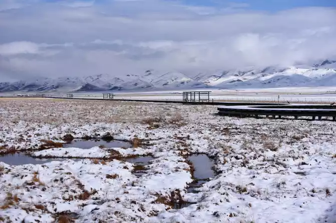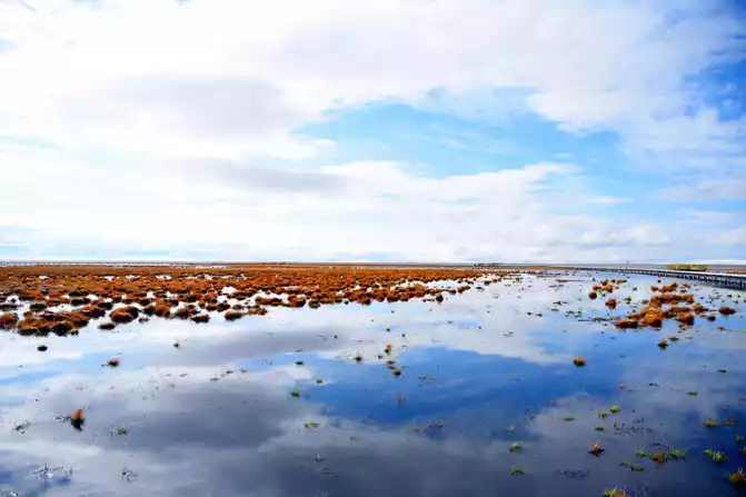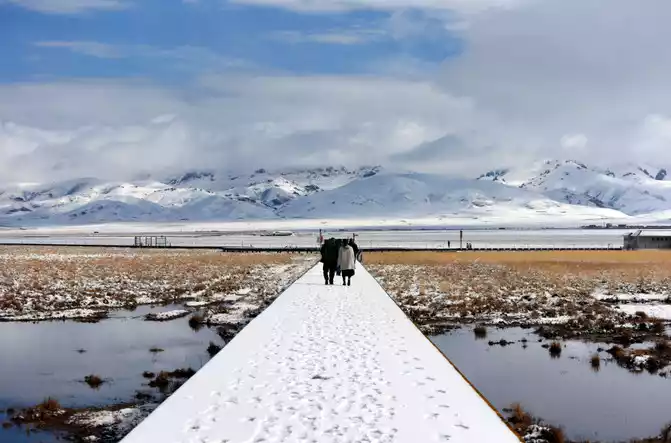 Huahu is a natural lake on the grassland of the Ger Dam, and it is also the most beautiful wetland in China, the hometown of black-necked cranes, and the second largest wetland in our country. It is located next to National Highway 213 between Ruoerge in Sichuan and Langmu Temple in Gansu. Here, we enjoy the beautiful scenery of nature and marvel at the magic of nature. This is an excellent tourist and photography destination, especially the flower lake after the snow. We stroll through the flower lake, as if stepping into the pure world of the sky, and the mood will suddenly be enlightened, the lake water here plus the snow covered after the snow, as well as the clear blue of some waters, and the yellow of the dry grass, constitute a colorful color, which is an indescribable beauty.