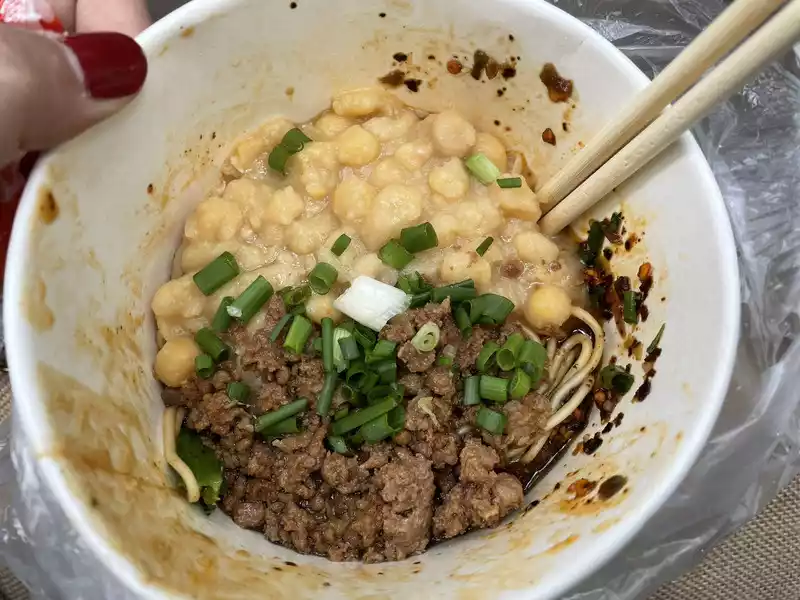 In the morning, go to Bao Ge mixed sauce Wanzhou noodles on Palladium Street to eat a bowl of special pea mixed noodles, Although the store is small, the aunts are very enthusiastic, and after breakfast, they take a taxi to the panda base.