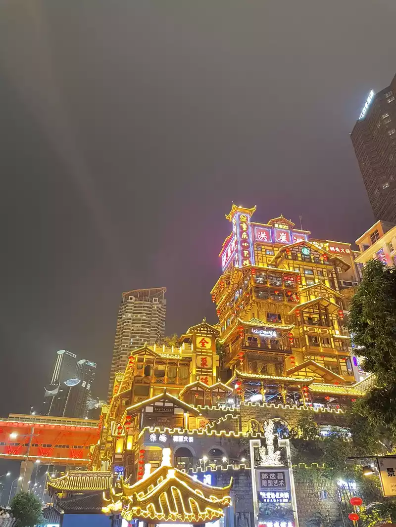 are really a lot of people taking pictures in Hongya Cave, whether it is the observation deck or the roadside, it is crowded, you can go to the overpass next to it to take pictures of different Hongya Cave. Be sure to pay attention to the time when taking photos, and turn off the lights at 10 o'clock in the evening.