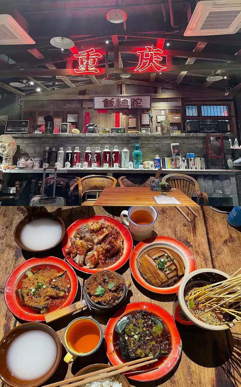 Super authentic small bowls, retro decoration, old-fashioned wooden tables and benches, mottled walls, yellowed wallpaper, and old objects placed everywhere make people feel the old Chongqing of the seventies and eighties as soon as they enter the door.