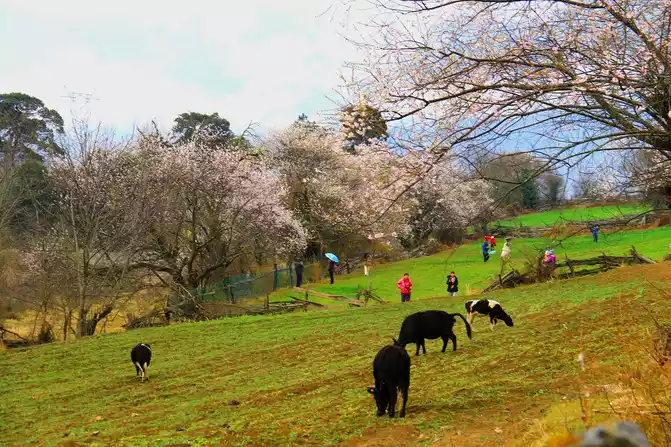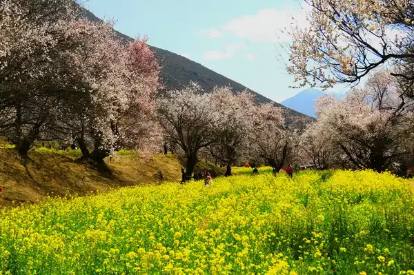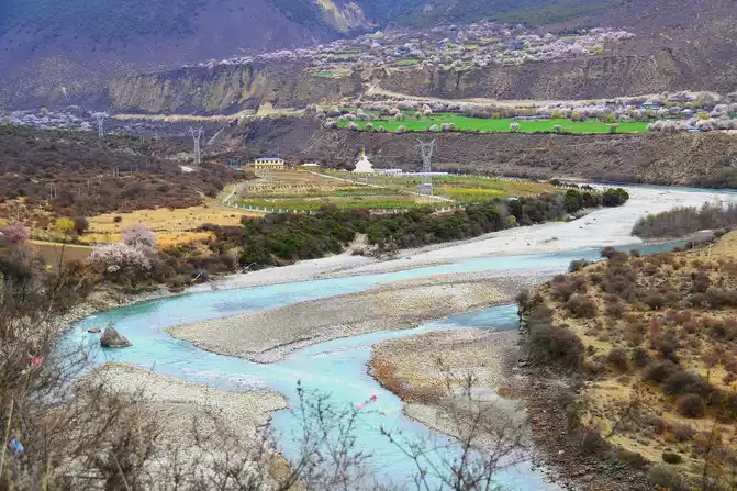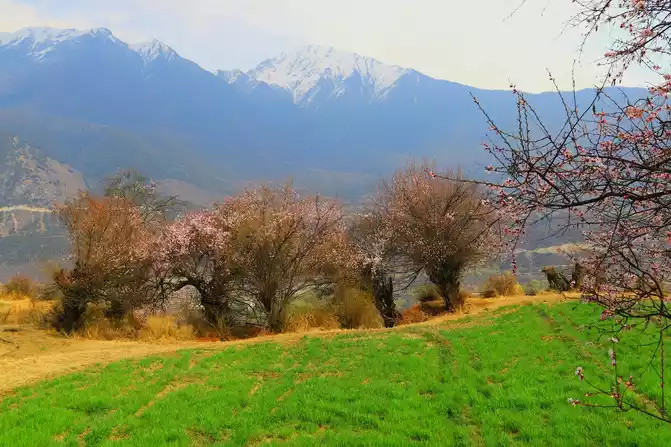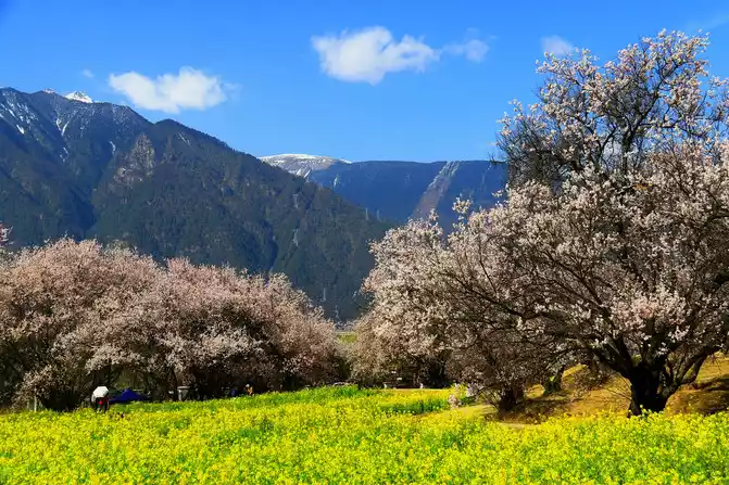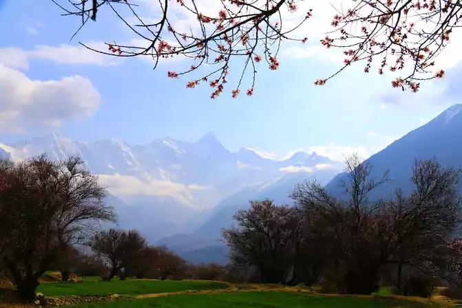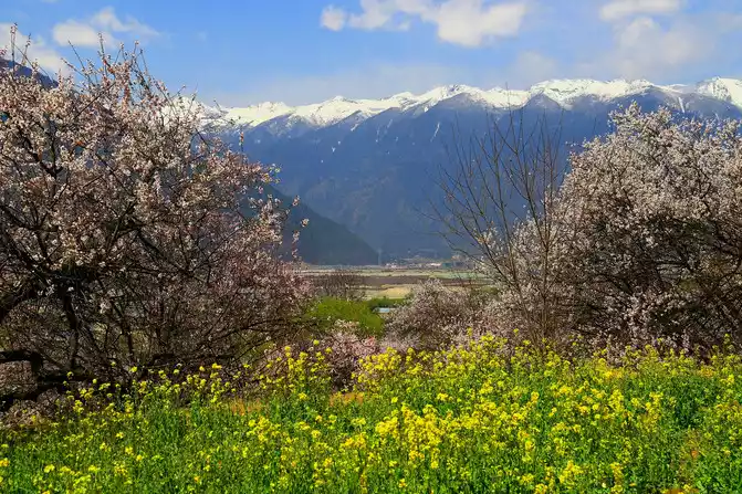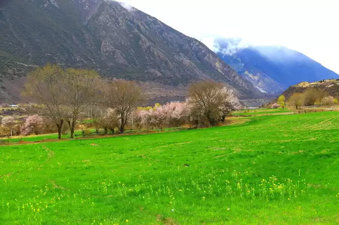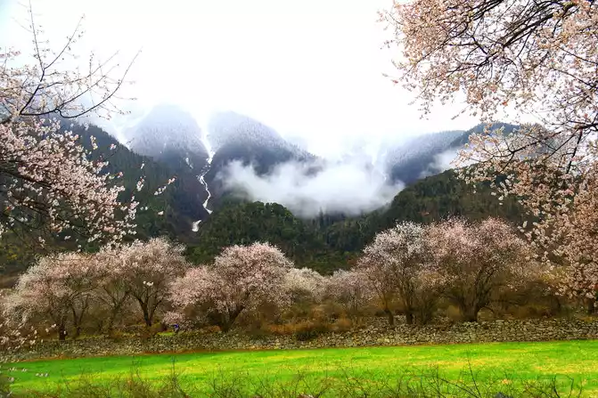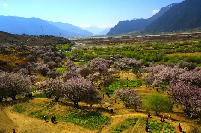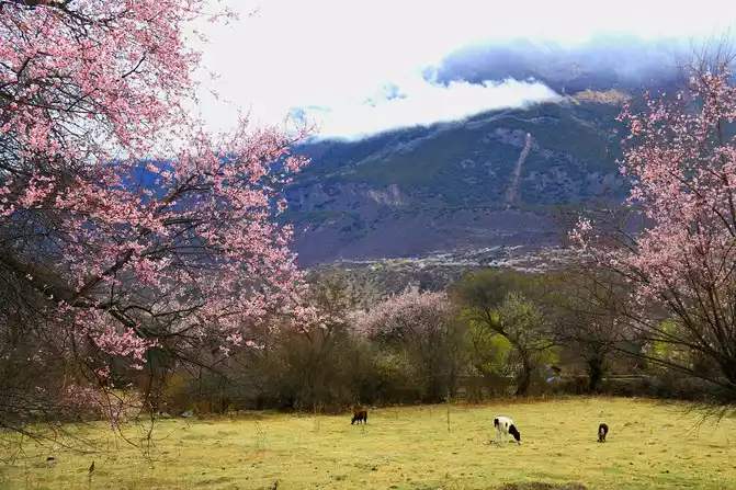 From mid-March to mid-April every year, when these wild peach blossoms bloom in the valley, on the hillside, on the riverbank, and in the farmstead, the majestic snow-capped mountains, pink peach forests, and starry wildflowers on the green grass are like clouds on the ground; Contrasted with the snow of the mountains and the fields and villages, it is even more picturesque and beautiful, and it is another stunning beauty hidden on the plateau. Therefore, it is not surprising that it is known as "the most beautiful flower event in China", attracting many tourists, especially photographers. This year, we are also very fortunate to be a part of it and come to Nyingchi to enjoy the peach blossoms.