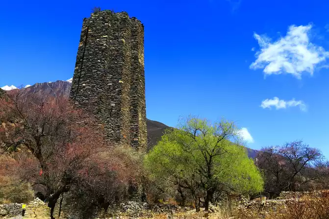 Today, I visited the scenery and scenic spots along the road such as the Xiuba thousand-year-old building complex (Gesar Castle), Opa Village, and the Niyang River. Unfortunately, the peach blossom trees on the hillside of Laru Peach Blossom Village have just begun to bud, and the landscape is average. But the scenery along the way, as well as the partial blooming peach blossoms in many villages, is also overwhelming and lingering, and there is no sense of worthlessness because of the extra tens of kilometers.