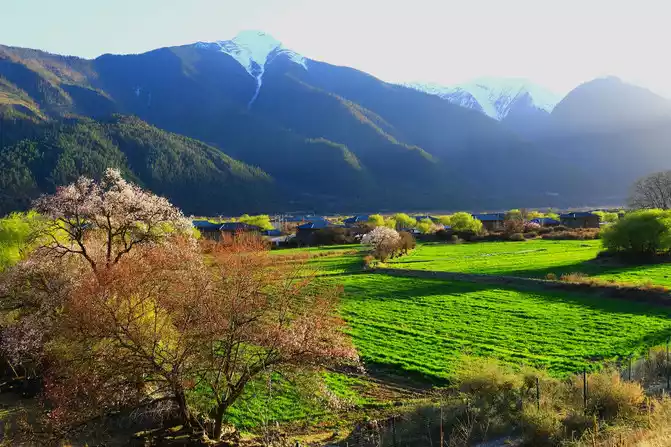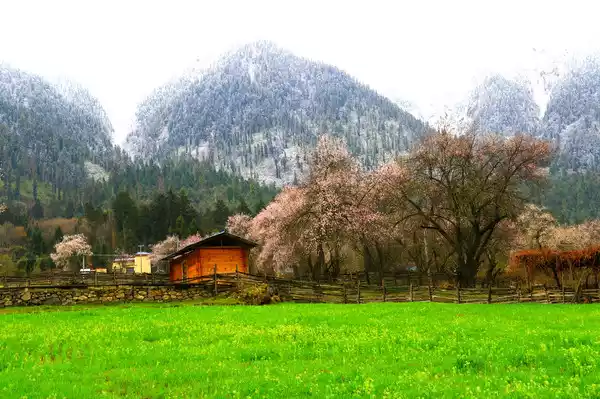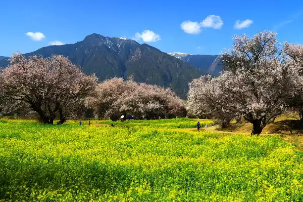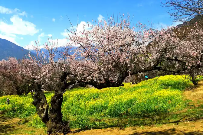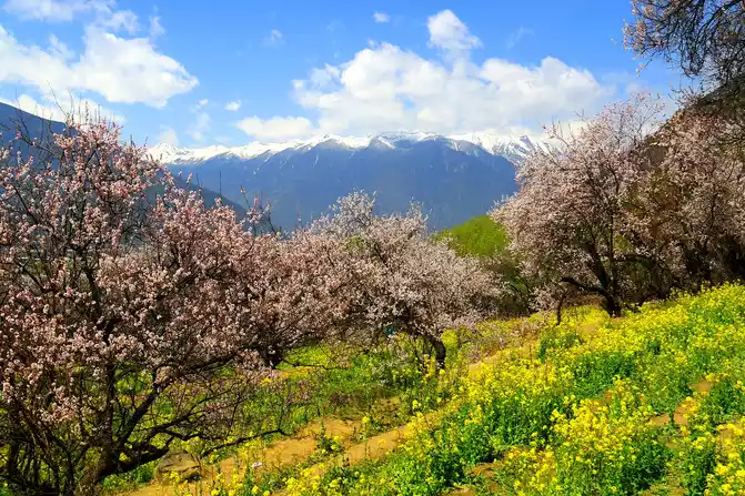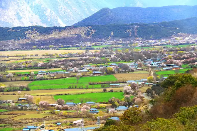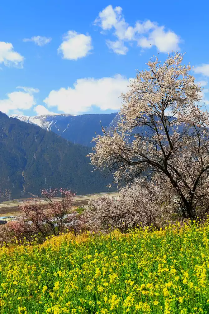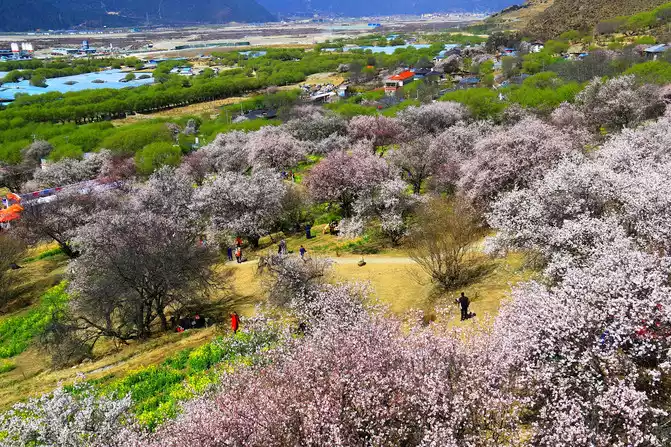 Gala Village Peach Garden is located along National Highway 318, only more than ten kilometers away from Nyingchi city, and is the main venue of the 19th Peach Blossom Tourism and Culture Festival in Nyingchi, Tibet in 2021, and has the reputation of "the first village of Peach Blossoms in Nyingchi, Tibet". This is an enviable paradise, with dense peach trees and mountains; Peach blossoms bloom in a variety of forms. At the foot of the mountain and on the hillside, the layers are layered and staggered; The rapeseed flowers in the shade and open areas are yellow and green, full of vitality; In the distance, there are fields, villages, rivers, snow-capped peaks, and mountains are intertwined, which is unique to Tibet; Climbing to the observation deck several stories high, you will see a dreamlike beautiful scenery, and the colorful visual feast is refreshing and eye-opening.