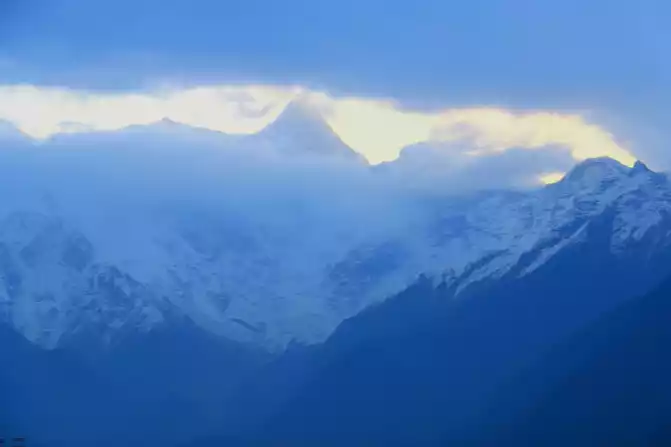 In the evening and early the next morning, we were lucky enough to see a little bit of the beautiful scenery of the Nanga Bawa Peak Rizhao Golden Mountain. Although the clouds are still thick, the visibility is not very high, the scene is not very clear, and it is only a few seconds, but it is not easy and exciting.