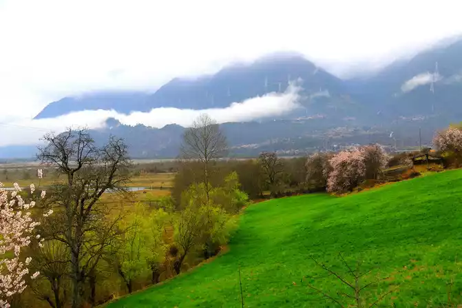 5. If you have limited time and are convenient, you only need to go to Gala Peach Blossom Village and Bomi Peach Blossom Valley in Bayi District to come to Nyingchi to enjoy the peach blossoms. Both points are along National Highway 318, with convenient transportation, and the peach blossom viewing season is relatively close and the places are relatively concentrated. To Gala Peach Blossom Village in Bayi District, you only need to go to Gala Peach Garden, Bomi Peach Blossom Valley, and walk all the way from Galang Village to Runa Village for just a few kilometers. The peach blossoms at these two points should be said to be the largest, most representative, and most famous of the Nyingchi peach blossoms.