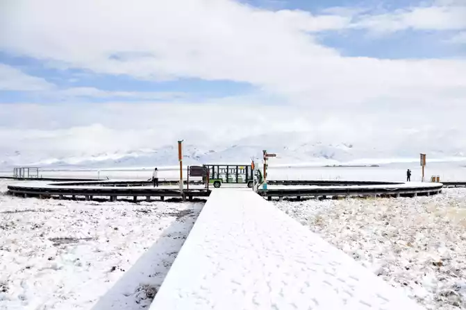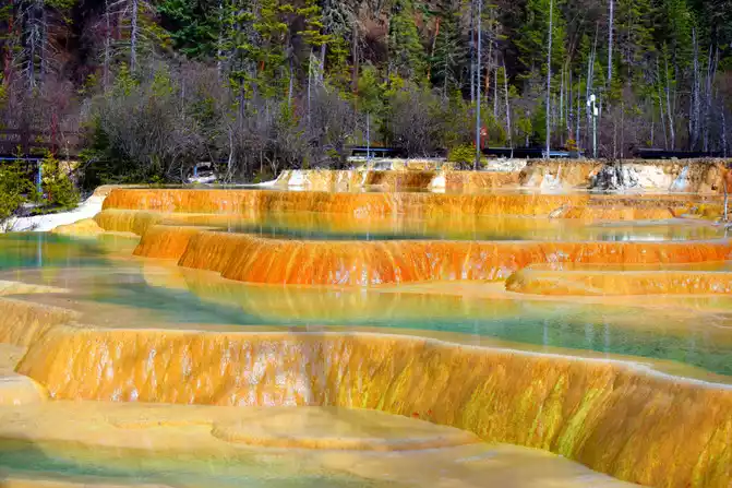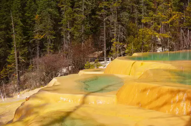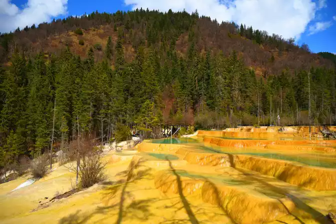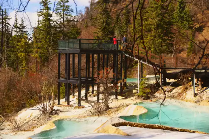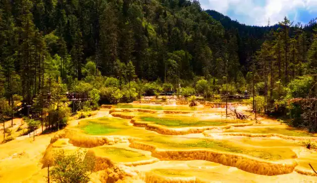 Yaochi: It is connected by several calcified pools of different sizes, connected like jade pieces when it is calm, and like a celestial bead falling in a blue plate when the wind and rain pass, giving people the illusion of being separated from the world. Standing on the glass viewing platform on the Yaochi, as far as the eye can see, the wonder of the "terraced fields" of the Yaochi is really unimaginable, is the wonderland where the Queen Mother lives in this form? Scientific explanation for the scene here: This is because calcium carbonate is dissolved in spring water, and the sediment produced after evaporation covers the surface, but I believe that I am in the Yaochi above the nine heavens in the deification legend, sharing a piece of land with the gods.