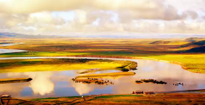 This is the Yellow River, something you haven't seen before. In your heart and mind, what kind of Yellow River have you seen? Maybe it's the magnificence of Qiankun Bay? Or the monstrous roar of Hukou Waterfall? Have you ever seen a very calm Yellow River? There is also a big bend of the Yellow River, then I suggest you go to the first bay of Jiuqu to take a look, the scene of the Yellow River here will indeed subvert your imagination, the first bay of the Yellow River Jiuqu originates from the Yellow River in the Bayan Kara Mountains and flows through Sichuan Province. In this section of the process, the Yellow River is the boundary river between Sichuan and Gansu, Hexi is Gansu, and Hedong is Sichuan.