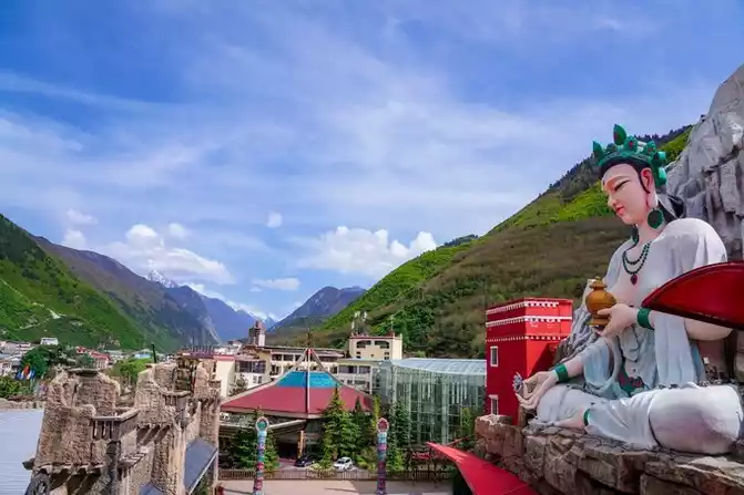 Jiuzhai Eternal Scene Area is a large-scale theme park in Jiuzhaigou, a living ancient city of Tibetan and Qiang, and an ideal destination for urban cultural centers and night tours in Jiuzhai. The ancient city is adjacent to the Jiuzhaigou Scenic Area, with sightseeing projects such as the statue of the goddess Sema, the Tibetan watchtower, the Thousand Buddha Cave, and the West Chuan Street, taking you to experience the original Tibetan and Qiang style. When you travel to Jiuzhaigou during the holidays, you must play Jiuzhai Eternal Love, and the detailed guide and performance content are presented.