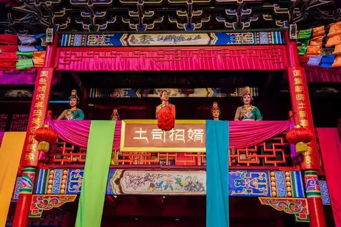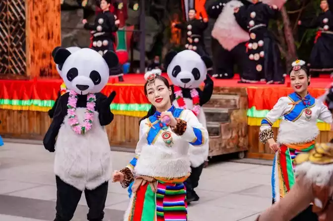 In the Jiuzhai Eternal Scene Area, there are wonderful performing arts shows such as "Tusi Recruiting Son-in-law", "Guozhuang Carnival", and "Panda Playing Mahjong", and walking into Jiuzhai Eternal Love is to enter a fantasy journey through time.