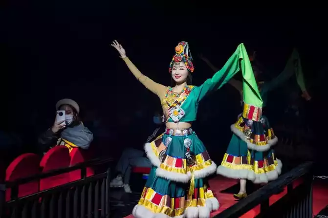 The large-scale song and dance "Jiuzhai Eternal Love" is the highlight of the entire eternal scene area, which is highly recommended to watch, the content is touching, and the program effect is shocking. The whole program is divided into five parts: "The Legend of Jiuzhai", "Ancient Qiang War Song", "Han-Tibet Peace", "Great Love Without Borders" and "Heaven and Earth Auspicious".