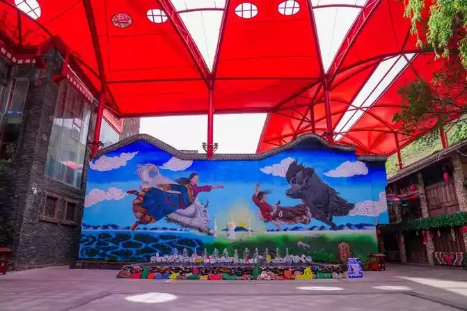 First of all, enter from the Qiang-Tibet architectural style gate, which is a magnificent visitor center, and is also the entrance and exit of ticket inspection, in addition to the function of tourist service, the whole hall also tells the past and present life of the entire Song City, and the stories in front of and behind the scenes about the Song City interpretation are shown here one by one, and you can stop and watch if you are interested.
