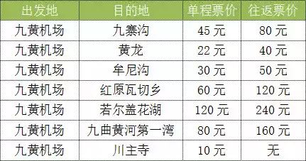 After arriving at Jiuhuang Airport by plane, tourists and friends have to transfer to a passenger car to reach Jiuzhaigou Scenic Area. At the same time, you can also take a direct bus to Huanglong, Munigou, Hongyuan Wache Township, Ruoergehua Lake, Jiuqu Yellow River First Bay and Chuanzhu Temple at Jiuhuang Airport, the details are as follows: