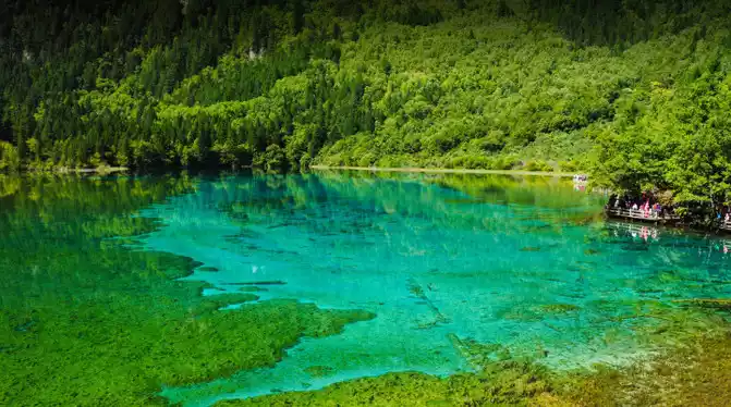 Among the many seas in Jiuzhaigou, the most famous and beautiful is the Wuhuahai, which is rich in changes and has a variety of postures, which can be called the essence of Jiuzhaigou Scenic Area. Jiuzhaigou Wuhuahai is 2,472 meters above sea level, 5 meters deep, and covers an area of 90,000 square meters, known as "Jiuzhaigou a unique" and "Jiuzhai essence", above the Pearl Beach Waterfall, the lower part of Panda Lake is at the end of the upper reaches of the Peacock River in Rizegou.