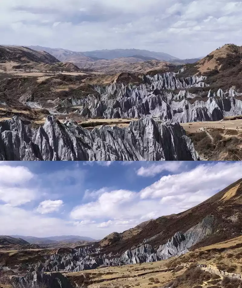 In the scenic area, a tourist minibus is sent to the top of the mountain, and then from the top of the mountain one stop at a time, 'Mugecuo→ Red Sea Grassland→ the sea is dry and the rocks are rotten→ Omatso →Seven Colored Sea', although I only walked around in Mugecso all afternoon, and the time was actually not enough.