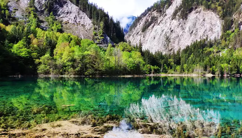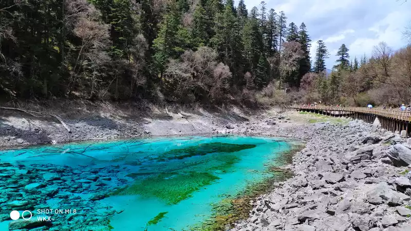 Since we live less than 10 minutes' drive from Jiuzhaigou Scenic Area, we rarely don't have to get up early to go to the scenic spot ^_^. I have to say that the scenery of Jiuzhaigou is really beautiful, and even the dry season does not affect its amazement at all. The entire scenic spot is generally a Y-shaped route, but one of the forks is temporarily closed and cannot be seen.