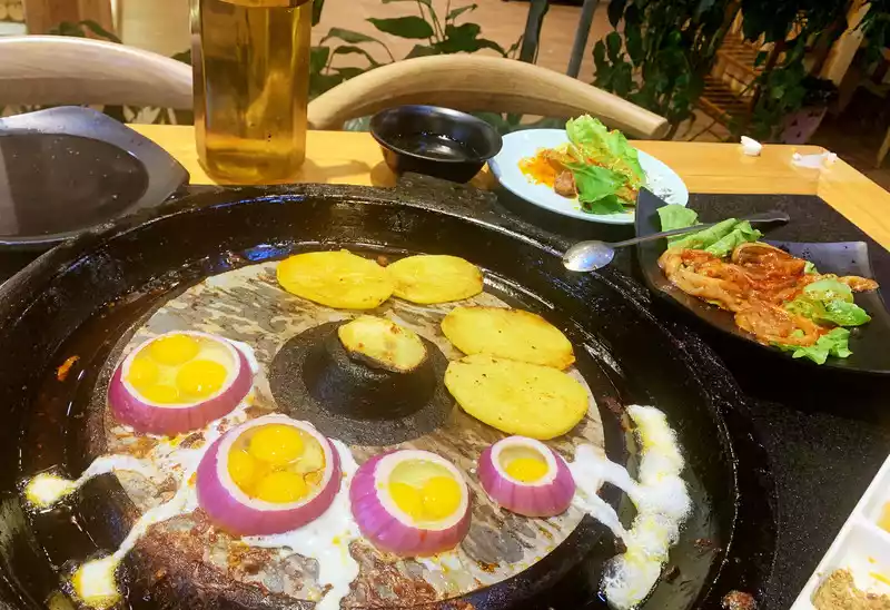 We found a barbecue restaurant with good reviews, which is not very far if you walk for about ten minutes. But after finding it, the boss asked us if we had an appointment, and I ??? (You actually have to make an appointment here??? But the boss still let us in and order later). At first, the boss strongly recommended that we order a lamb chop or grilled fish, but thinking that we were only two people, so we still declined, but we didn't expect that after we didn't order these things, the boss instantly changed his face, let us look at the menu and go to the proprietress to bake the things we wanted, ah, it's really unpretentious-_-.