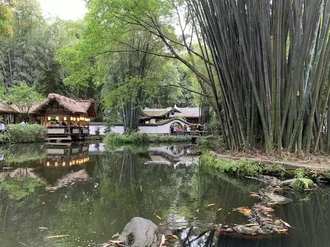 It is not convenient to go back to the city center to take the bus, you need to walk back to the north gate of Du Fu thatched cottage, or you can take a taxi.