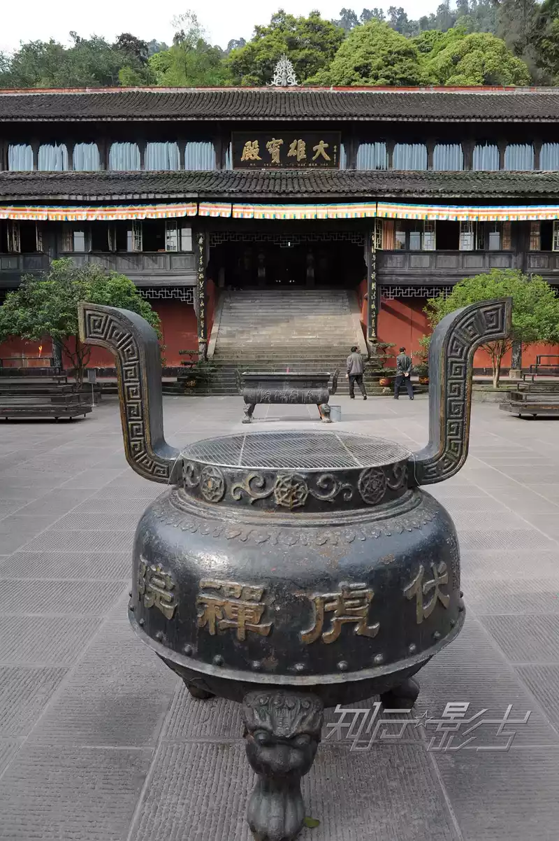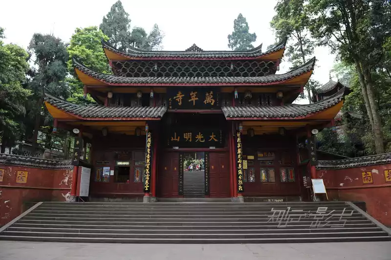18. I took a minibus from Jinding and stayed at Wannian Temple for one night. In the Wannian Temple, where the tourists dispersed, I felt the tranquility and heavy historical atmosphere of this famous temple alone. Wannian Temple was built during the Long'an period of the Eastern Jin Dynasty in 401 and rebuilt in 876 of Tang Qianfu; It has been named Puxian Temple, Baishui Temple, and Baishui Puxian Temple; The Ming Wanli Emperor changed its name to Wannian Temple. The four big characters of the gate of Wannian Temple seem to have the same meaning whether read left or right - "mountain is vast" and "big bright mountain".