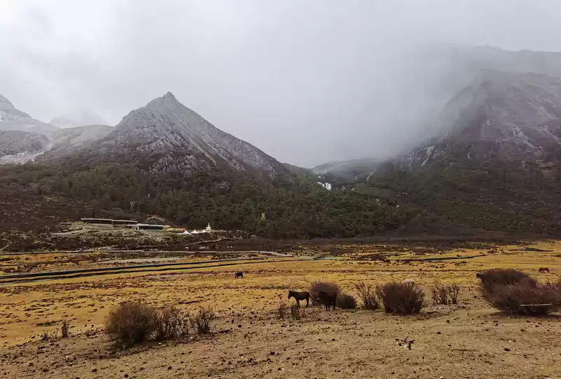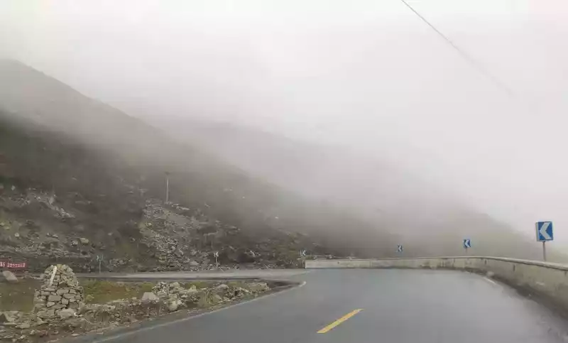 Through Kangding , the first thing to pass is the famous Zheduo Mountain, the climate of Zheduo Mountain is changeable, often encountering rain and fog days, we are the same as last time, when we arrived here, it was already rainy and foggy, and the temperature also dropped from 32 degrees in Chongqing to 3 degrees, the mountain road is still winding, and the altitude is also rising rapidly, the highest altitude of Zheduo Mountain is nearly 4800-4900 meters, You can also transition to adapt here (we haven't had time to change into winter clothes ^^)