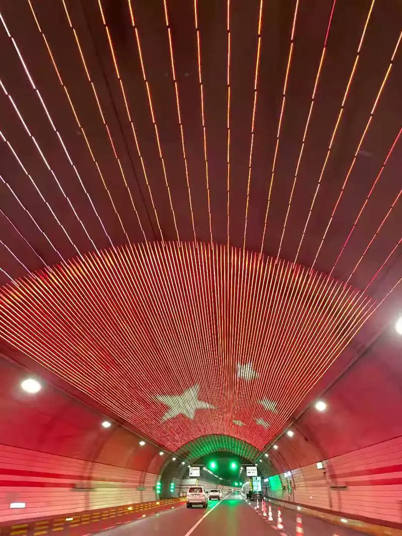 along the way After that, you have to go through a long tunnel group, a long one of 10km and a short one of 2km, and the light strip of the tunnel is very novel. The tunnel just after passing the Xindu Bridge is okay, the speed limit is 60km/h, but after that, I don't know why it becomes a speed limit of 30km/h, and it is also an interval speed measurement, which is like crawling, and the local cars behind always prefer to press the line and change lanes to overtake us, we can only follow the regulations honestly.