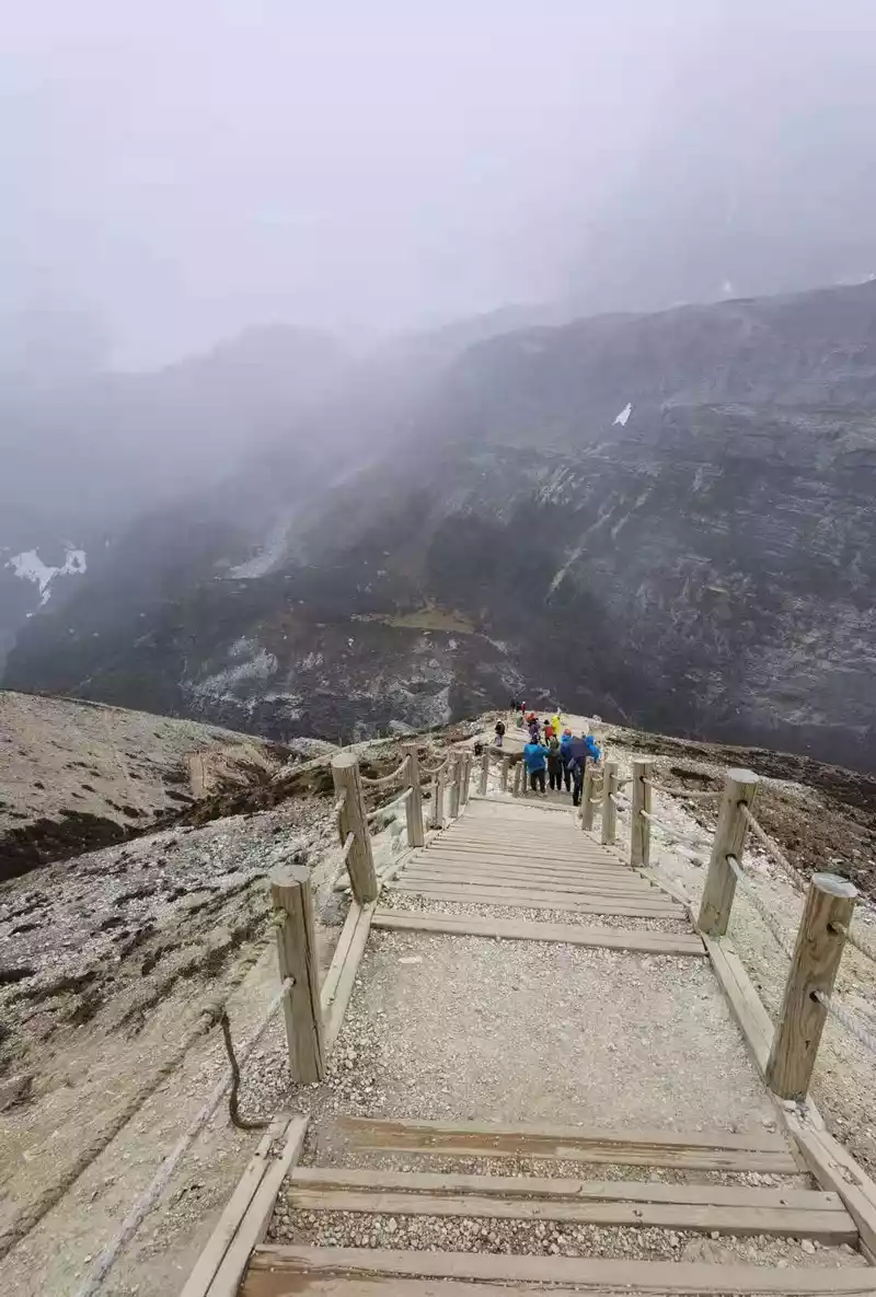 Finally, we walked to the sea of milk in 2 hours and 40 minutes at a more conventional speed.After a short period of appreciation and rest, we continued to the five-color sea at a distance of only 0.3km, although it was only 0.3km, which was a vertical climbing staircase, coupled with the physical exertion at this time, from the milk sea to the five-color sea, and then back to the Luorong Cattle Farm, the return trip took a total of 3 hours