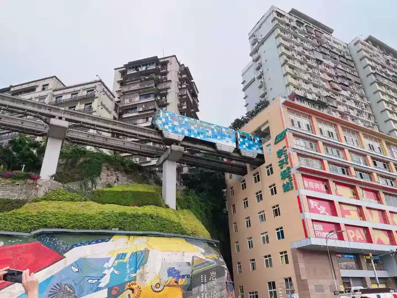 Although there are many people, fortunately, I have seen the well-deserved light rail entering the building.Take Line 2 from Liziba Station to Linjiang Gate, and walk down a few steps to the Liberation Monument