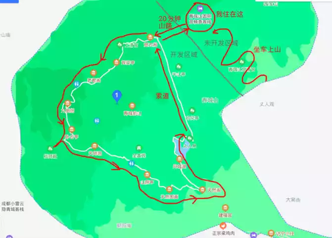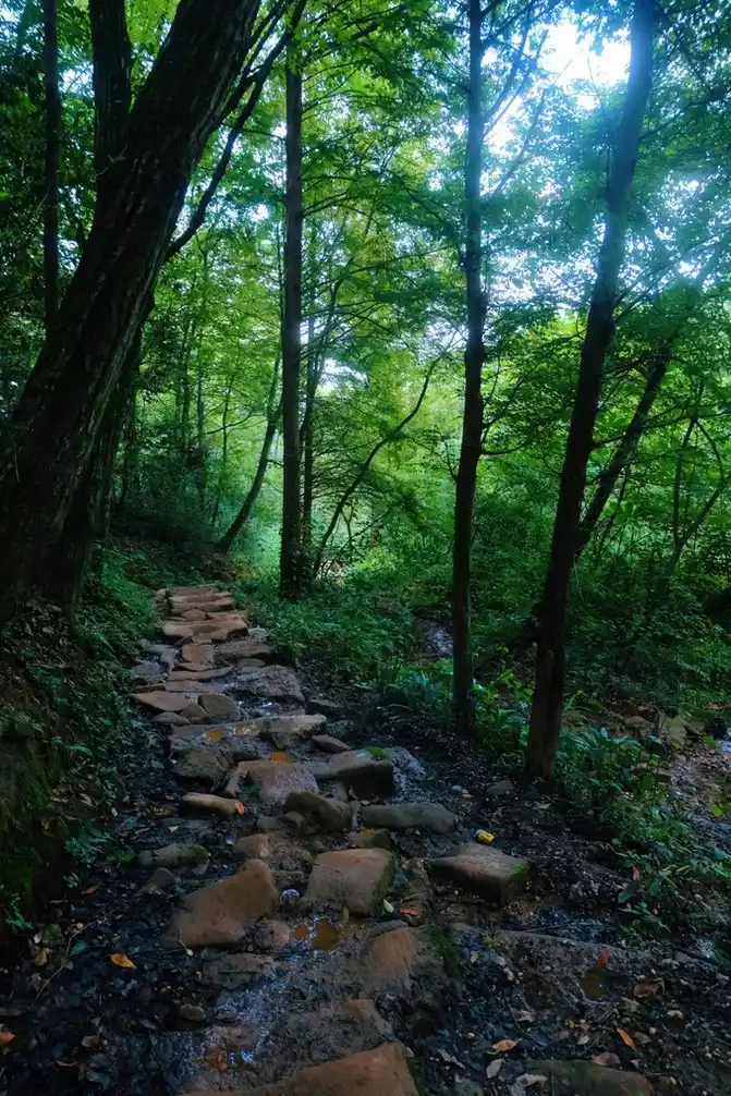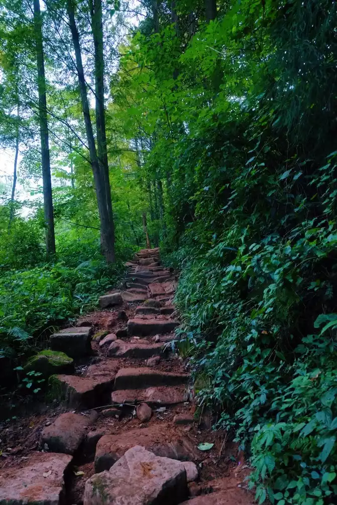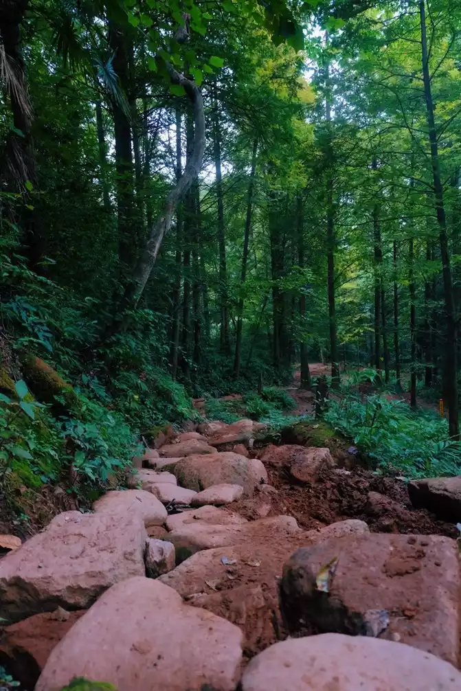to Qingcheng Mountain Scenic Area from the Old Summer Palace is paved with irregular large stones, although it is difficult to walk, but the air is fresh, and the ears are the chirping of insects and birds in nature , every nerve in it is relaxed.