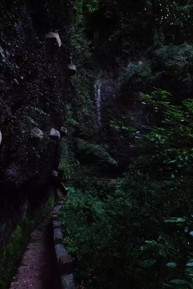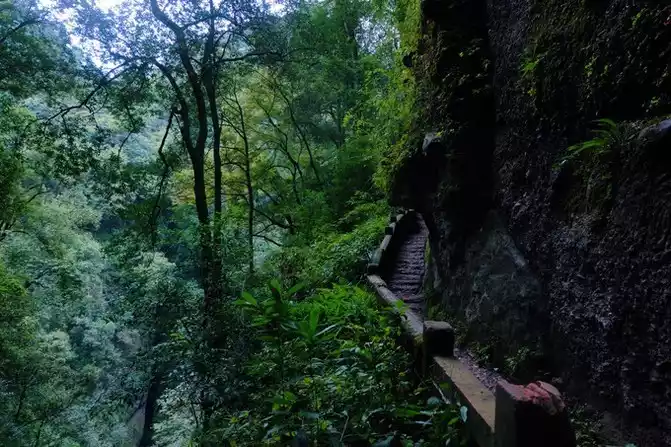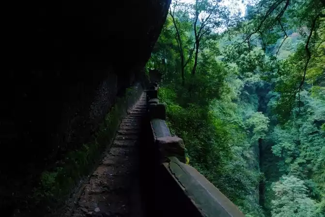 was built with wood in ancient times, which made people tremble, and then carved a passage into a wall against the rock, and a stone fence was placed next to it.