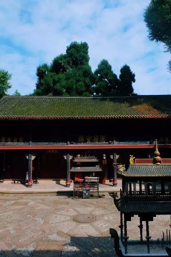 The Shangqing Palace was built in the Jin Dynasty, and the existing temple was built during the Tongzhi period of the Qing Dynasty, and the Laojun Hall was dedicated to the Supreme Laojun, the Patriarch of Chunyang and the Patriarch of Sanfeng, with a statue of Lao Tzu and a woodcut of 5,000 words of the Tao Te Ching.