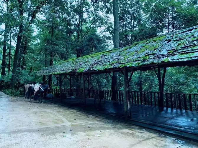 mule pulling goods at the gate of Qingcheng Mountain. (Other people's mules are not mules from the Old Summer Palace)