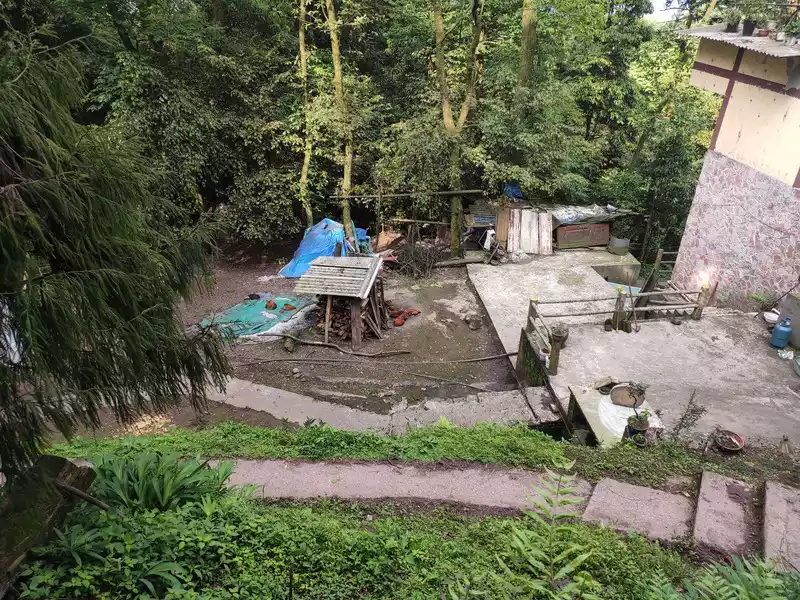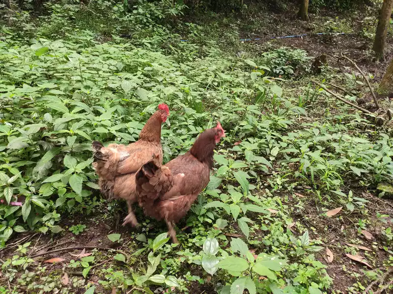 Thereare still vegetables and chickens growing in the backyard
